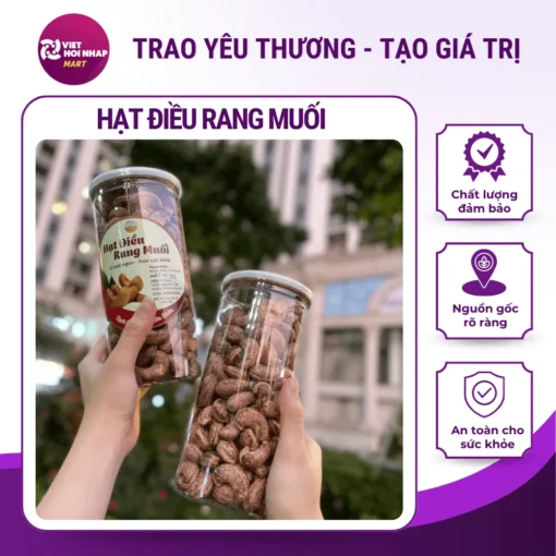 – Hạt điều rang muối giàu omega 3-6-9 giúp cung cấp đủ axit béo không bão hòa thiết yếu cho cơ thể, giảm nồng độ chất béo trung tính, tăng cường sức khỏe cho hệ tim mạch, tốt cho người bị tiểu đường.