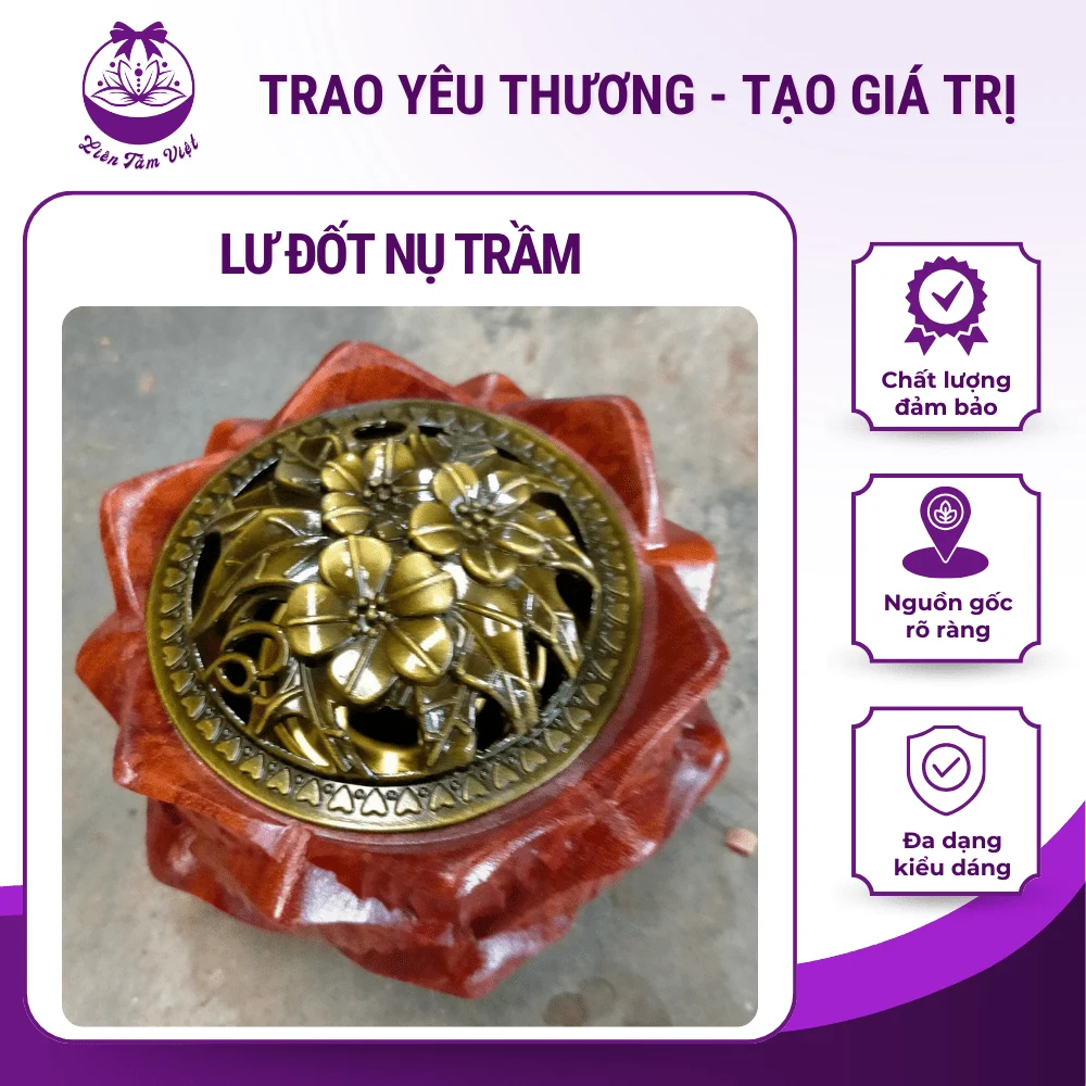 – Lư hương được làm bằng đồng đúc nguyên khối rất bền, đẹp