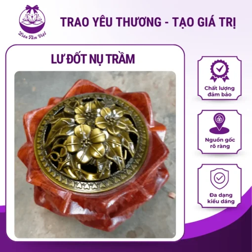 – Lư hương được làm bằng đồng đúc nguyên khối rất bền, đẹp
