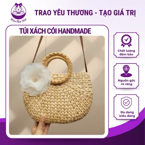 – Túi được làm từ chất liệu cói có đặc tính bền, nhẹ, thoáng mát, thân thiện với môi trường.